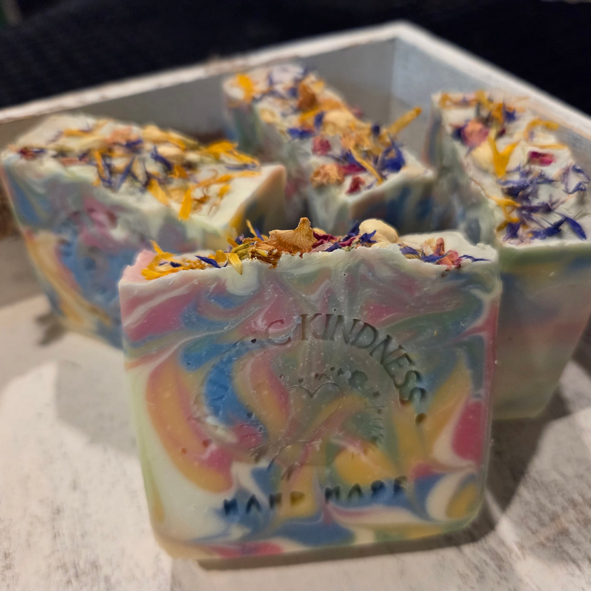Swirled with calm wildflower hues and topped with dried petals, this bar is a little piece of the untamed outdoors — bold, beautiful, and made to nourish.