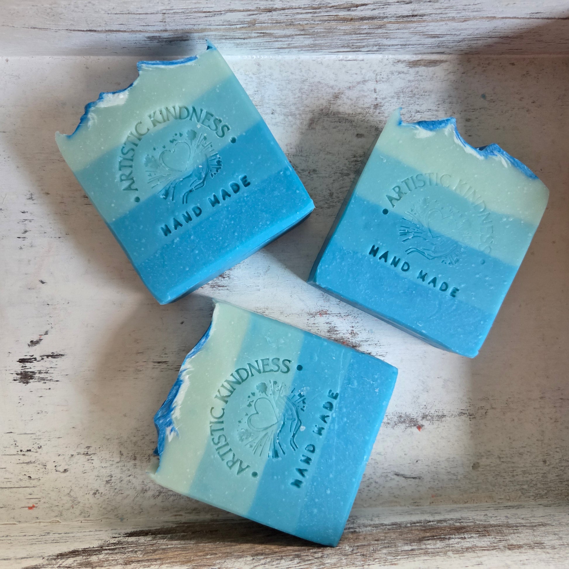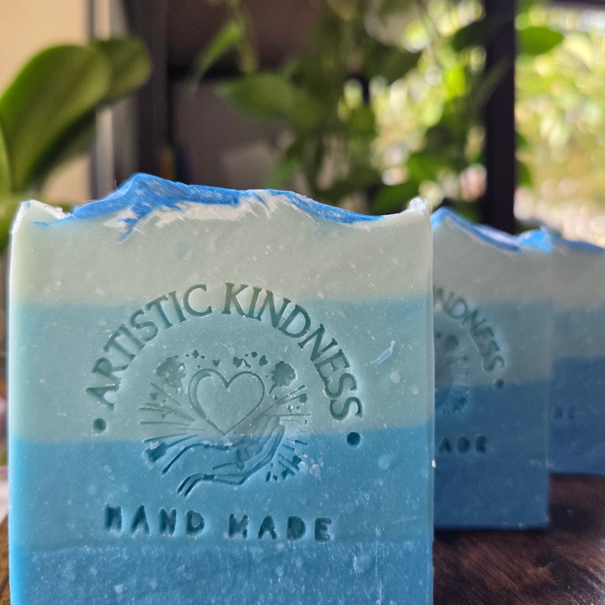 Sea and Sky is a layered journey through the sea — four shades of blue that fade from deep navy to soft seafoam, like waves rolling in under an open sky. The scent is clean, cool, and invigorating, with a salty breeze and sunlit water in every lather. It's the feeling of standing at the edge of the shore, grounded and free.